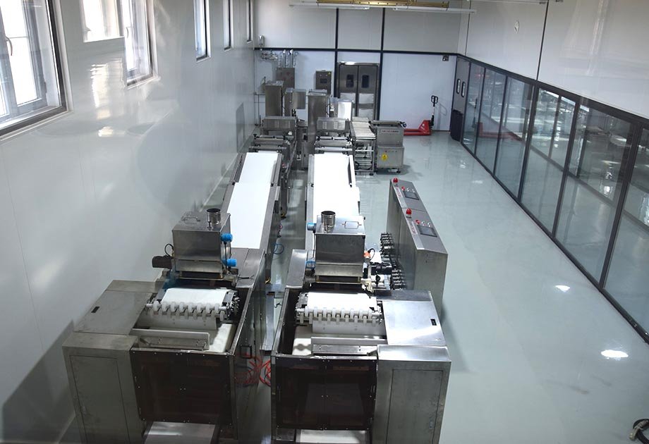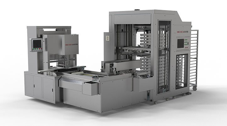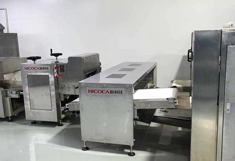 成型的面坯進入搓圓整形機進行搓圓塑形工序,將面坯搓成圓柱形,修圓弧頂,整形收底,該設備分工明確、相輔相成,使工藝步驟更加優化。