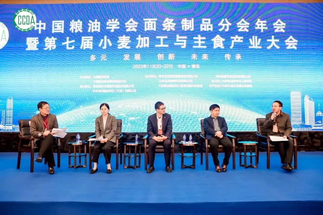 11月21日,中國糧油學(xué)會面條制品分會年會暨第七屆小麥加工與主食產(chǎn)業(yè)大會在青島召開,本次大會由中國糧油學(xué)會面條制品分會主辦,青島??萍阎悄芸萍脊煞萦邢薰境修k,以“多元 發(fā)展 創(chuàng)新 未來 傳承”為主題,匯聚了來自全國的300余名知名專家學(xué)者,企業(yè)家、學(xué)生代表展開對話交流。