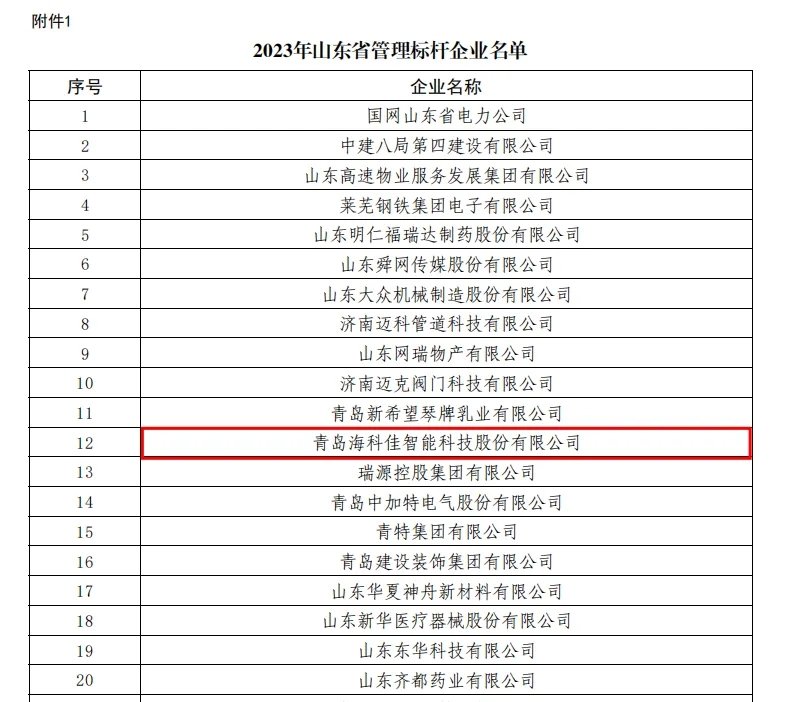 青島海科佳獲評2023年山東省管理標桿企業(yè)