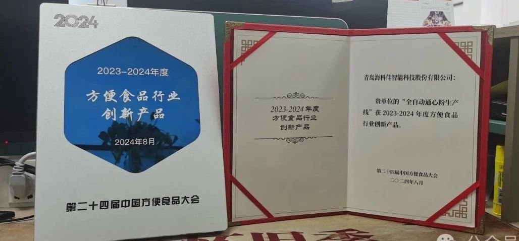 在本屆方便食品大會中,青島海科佳“全自動通心粉生產線”獲得“2023-2024年度方便食品行業創新產品。這也是海科佳連續4年不斷有新產品獲得創新產品獎。本次獲獎的全自動通心粉生產線實現了從大米原材料的處理、和粉出絲、老化蒸制、烘干包裝的全流程自動化控制,保證產品品質的同時,極大的提高了生產效率。